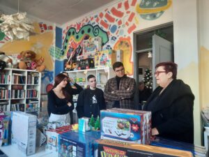 Οι επισκέπτες μας συνέβαλαν στο έργο του ΚΥΑΔΑ, προσφέροντάς μας ευγενώς μια γενναιόδωρη ποσότητα ειδών πρώτης ανάγκης, όπως τρόφιμα και ρούχα, ενώ παράλληλα παρακολούθησαν ξενάγηση στους χώρους της δομής από την Πρόεδρο του φορέα Μίνα Φούντζουλα.