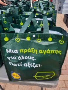 Ευχαριστούμε θερμά την Lidl Hellas, η οποία μας στήριξε έμπρακτα για άλλη μια φορά, προσφέροντάς μας ευγενώς 1.300 μερίδες παραδοσιακών μερίδων φαγητού, στις οποίες συμπεριλαμβάνονταν αρνί με πατάτες φούρνου, σαλάτα εποχής, φρούτο, τσουρέκι, αυγό κόκκινο και αναψυκτικό.